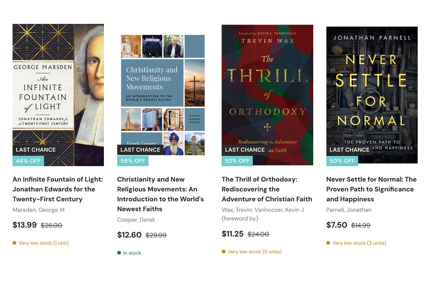 Frequently, it is these incredibly low prices that are the mechanism God uses to get great books into the hands of people who need them. Whether you are a parent, pastor, teacher, or student, we hope you will find something here of tremendous value.